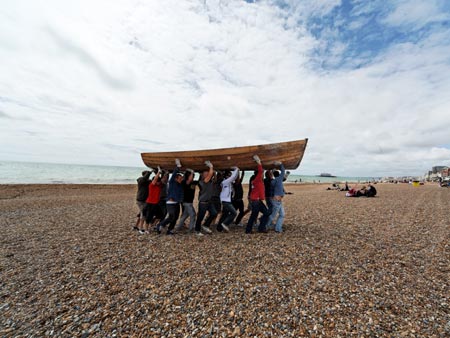 Mit vielen Menschen zu kommunizieren, heißt Aufmerksamkeit zu binden, individuelle Reaktionen ernst zu nehmen und achtsam im Dialog das Ereignis entstehen zu lassen. Die Frage nach Leitbildern und Werten beantwortet handl.e pictures unter anderem mit der Entwicklung von originären Szenen und künstlerischen Interventionen für größere Gruppen. Das kann zum Beispiel dazu führen, dass über 56.000 Mitarbeitern von 160 Tochterunternehmen weltweit im Rahmen eines Kultur-Projektes zur Beteiligung eingeladen werden. Oder aber 1.600 Teilnehmer eines Konzerntreffs bearbeiten innerhalb eines Nachmittages eine Messingkugel mit vier Meter Durchmesser.