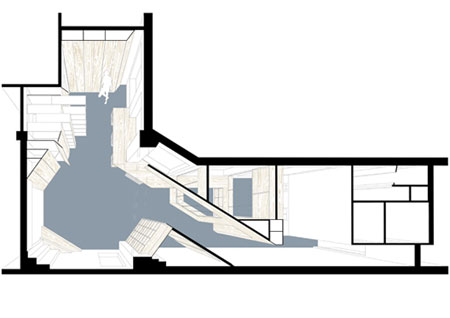 Nach Plänen des Berliner Medienarchitekten Julius Kranefuss wurde die gesamte Etage zu einem neuen Raumgefüge arrangiert und dient seitdem als Raum für Workshops für bis zu 30 Personen sowie Vorträge.